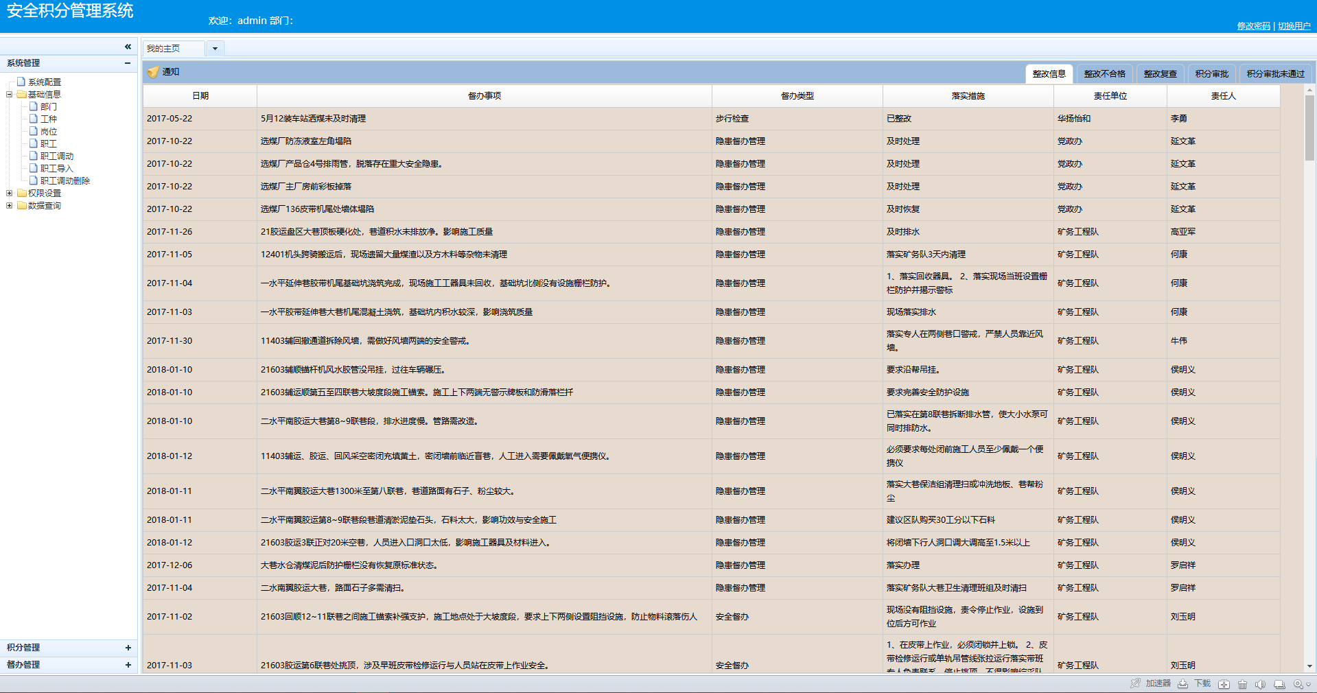针对矿区人员的信息录入,修改,删除,调动等信息。是安全积分系统的基础数据。