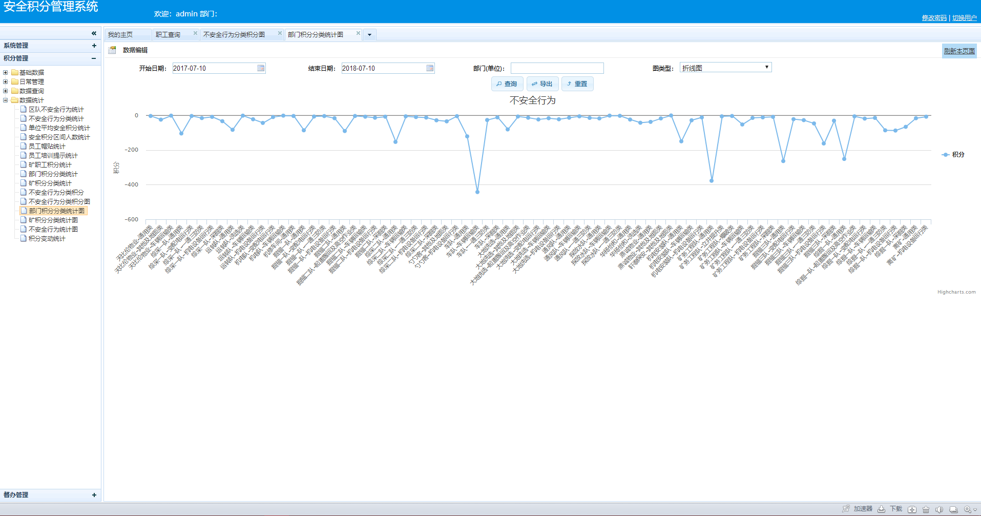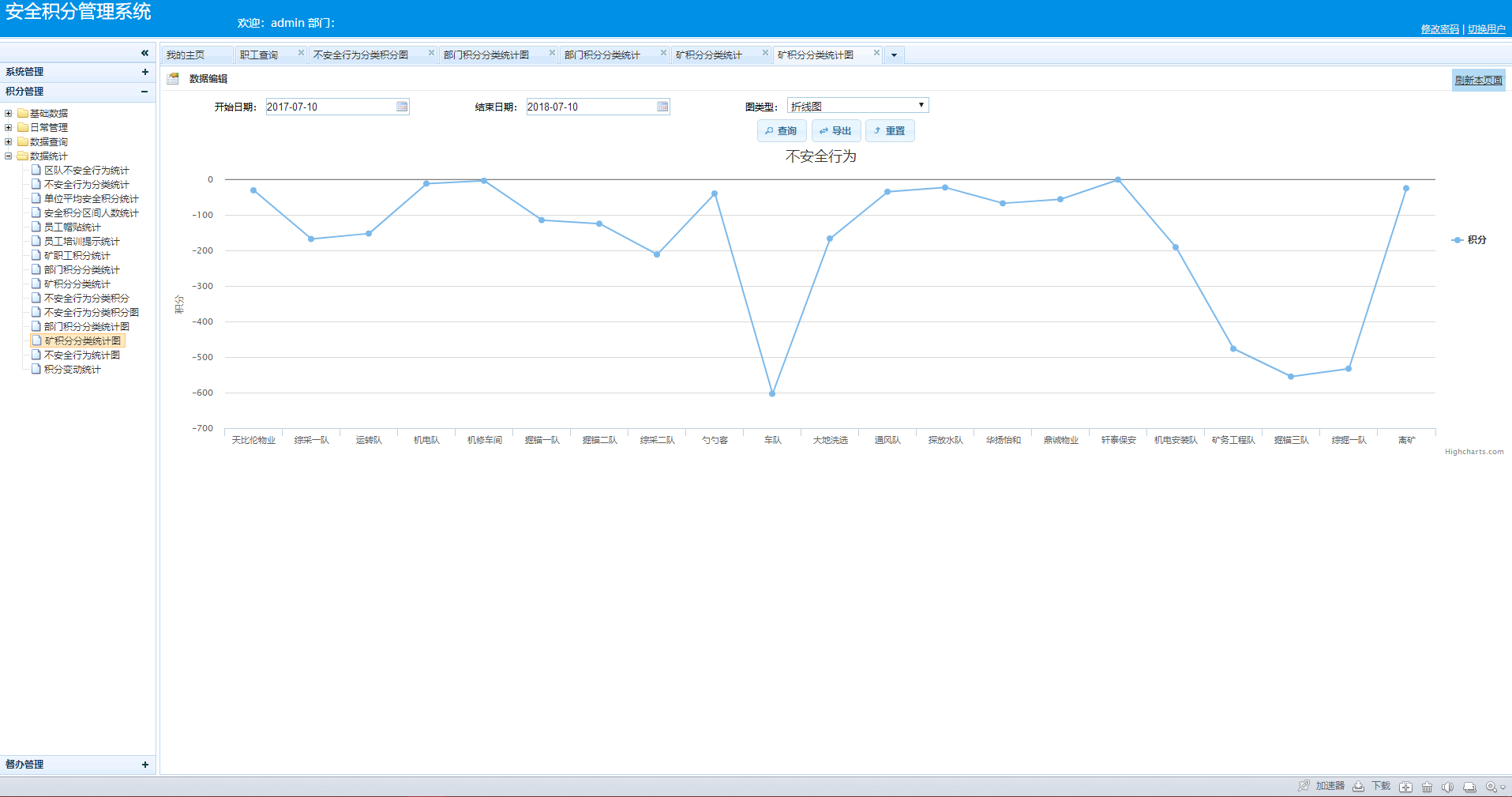 全面数据分析,系统根据积分情况分析统计出不同部门,提供给管理人员进行解读,发生原因制定相应方案。
